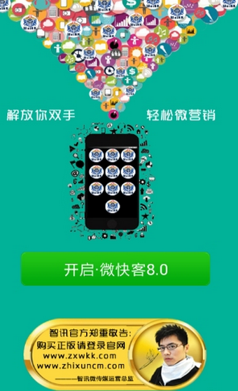 微快客免费版app是一款帮助微商朋友更好的进行营销的手机应用软件,在该应用中能够帮助用户自动搜索人脉,微信自动加人。自动循环群聊群发消息,给微商的朋友减轻不少的麻烦,避免自己重复手动发送消息。正在从事微商的朋友们,赶紧来飞翔下载使用吧!
