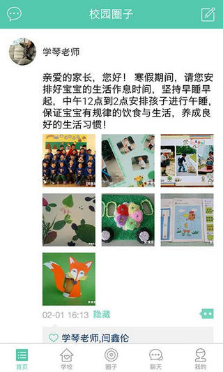 学校相册:可分班级浏览各班相册,记录孩子美好瞬间