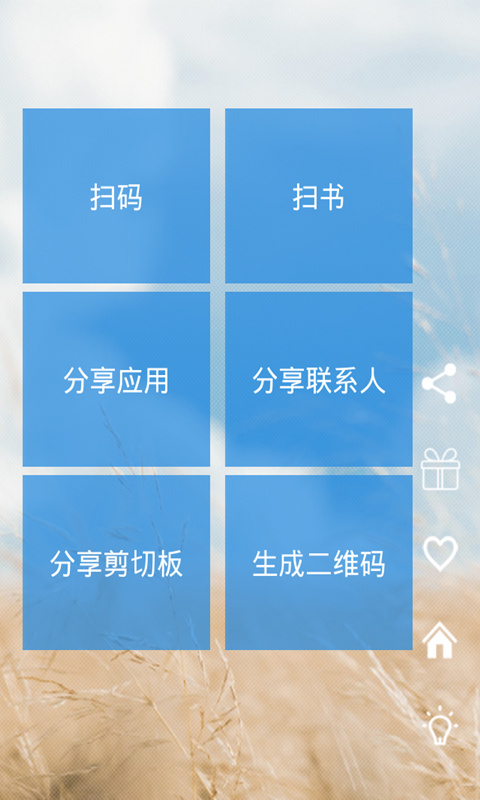 《扫码神器》包含了六大功能:扫码、扫书、分享应用、分享联系人、分享剪切板以及生成二维码。扫码功能非常强大,能够扫描各种条码,并且,根据分析出来的内容智能的弹出不同的功能;扫书是根据扫描书本条码的结果获取该书籍的基本信息以及评论内容,实用性很强,也很方便;分享应用是通过二维码分享手机中的应用,只要扫描该二维码即可进入免费市场下载该应用;分享联系人包含文本以及Vcard两种分享方式;生成二维码包括是否含有LOGO两种方式供您选择,为您生成二维码提供良好的自主性。
