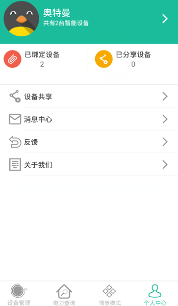 1、远程操控、电力查询、个人中心,通过APP可以实现智能电管家的所有功能;
