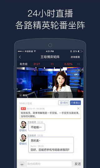 大象金服是一款由大象贵金属官方授权的股票行情系统分析软件,是每一个股民必备的app应用,为用户提供金融交易、行情、直播、资讯等服务,让大家能够随时随地掌握第一手股票详情,更有专业的股票分析师给您推荐最适合你的理财方案,有兴趣的朋友赶快来下载吧!