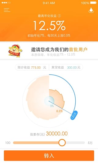 初始年化收益7%,每30天上涨0.5%,最终可达12.5%