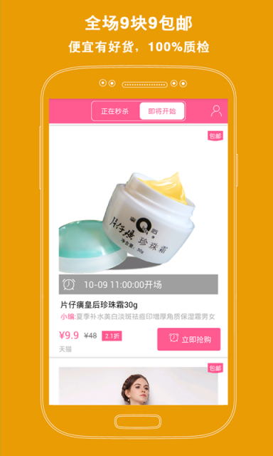 9块闪购是国内首家9块闪购限时秒杀商品的专业网站APP,数千万网购达人用户的选择。