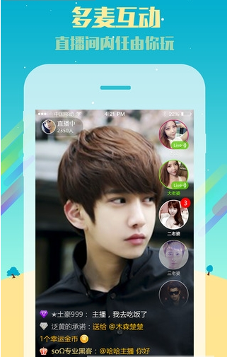 喵播app首创房间内多视频直播模式,移动直播新体验,多人秀场更好玩。随时随地与主播聊天互动亲密接触,清纯美女、校花嫩模、吃货萌妹、网红潮人、小鲜肉、老干部统统到碗里来!喵播app提供多元化的房间种类,其中包括音乐、脱口秀、社交、金融和教育。用户可以加入并参与卡拉ok、生日派对、才艺比赛和周年庆贺等实时活动。