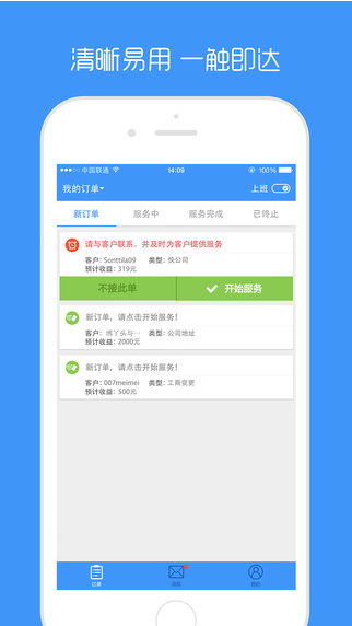 快法务服务者是一款手机企业法律服务平台,快法务服务者只为服务者提供最简单,最易用,最便捷的功能体验,让你随时随地可以处理订单服务,让你的工作更加简单,工作效率提供,收入增加,专为法务人员提供的简单好用的工作办事软件。