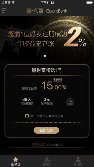 量财富(QuantBank),精选中国顶尖量化对冲基金,提供结构化设计的稳健型金融产品,致力于将欧美普遍青睐的这一投资方式带给大众,打造您专属的量化投资银行。——全球量化金融峰会主办机构。