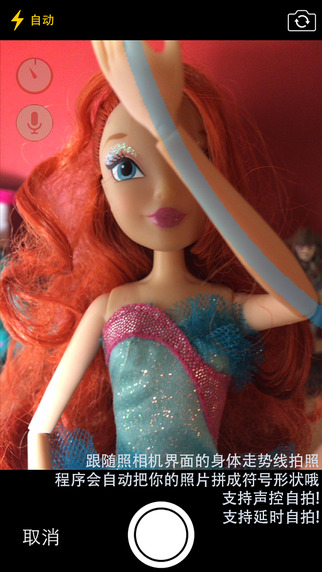 -照相机界面的身体走势线帮助你非常容易的拼出符号照片,或者你也可以从相册选择已有照片来,然后程序会帮你拼出最终的符号
