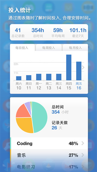 3.图表统计:最直观的投入时间统计分析。