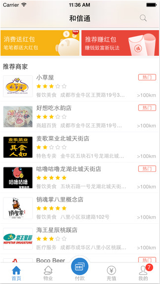 和信通作为成都本土最成熟的消费服务类(020)平台,配合和信通卡作支付使用。汇集全城上万家商户为您提供各类优质的到家、到店服务及常态折扣,可在成都、自贡、绵阳、德阳、达州等地区使用。更可享受加油站、连锁商超、休闲娱乐等全业态消费返红包特权!