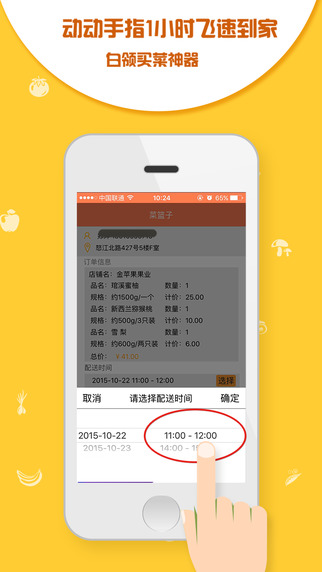 3、便捷:全品类生鲜食品,一天多次送货时间,最快1小时到家;