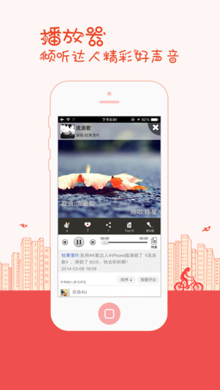 * 专业的手机唱歌软件,除了手机K歌,自带精确的评分和音调引导,练歌神器让你秒变KTV歌神。