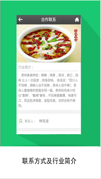 贵州美食是一款餐厅推荐的移动端,贵州美食是美食爱好者必备的神器,它聚集了贵州各地的美食及餐厅;还有美食制作,让你在家都可以轻松想用美食。贵州美食是一款讲述贵州饮食文化的软件,烹调精湛,菜式繁多,格局美观,具有辣、酸、香、鲜、野风格特色。你喜欢贵州吗?你想要了解贵州美食吗?那还等什么,抓紧下载吧!!!