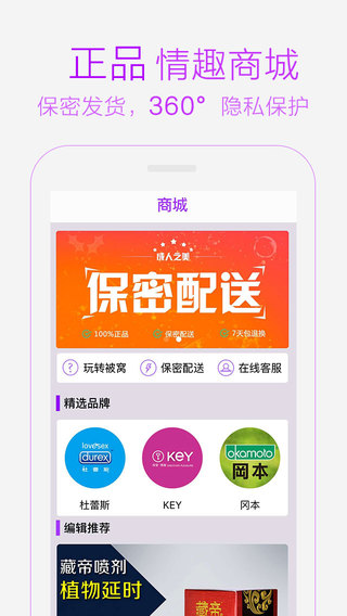 专门针对两性心理,夫妻健康,两性互助的分类功能,逛情趣找宝贝更快捷更方便;