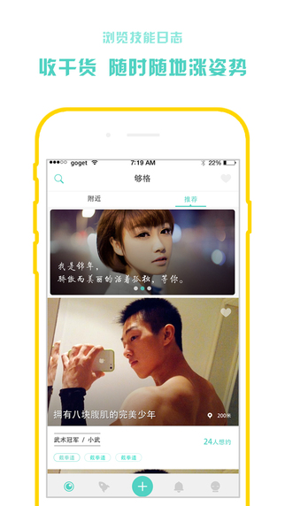 发呆犯困时,GoGet帮你扫描附近技能达人:哪里有趣点哪里,新鲜人永远都有下一个爱好、机遇和挑战。
