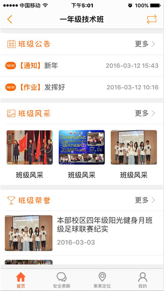 7、班级园地:查看学生所在班级的公告通知等;