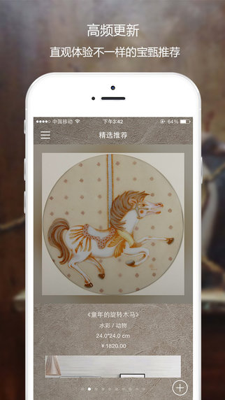 3、直观的艺术品体验:高频更新的艺术品推荐带给你不一样的宝甄风格,实时二维码扫描让你畅享最通俗易懂的艺术解读和认知;