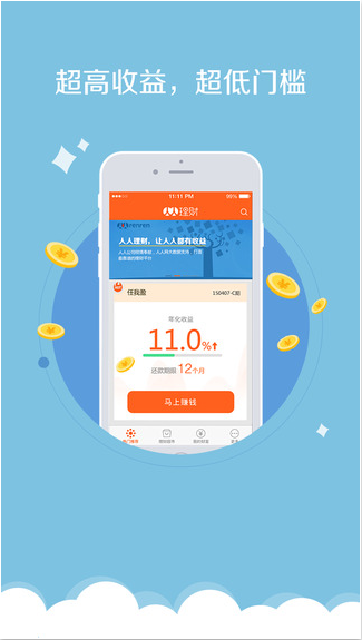 100元即可投资,年化收益高达11%,30倍银行存款收益,100%本息无忧。