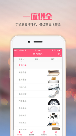 百度惠app是一款百度旗下的购物优惠类手机软件,这里每天都会推荐大量的优惠商品,吃喝穿用这里都能找到,保证正品的同时确保价格优惠,让你每天都过双11,喜爱的朋友赶快下载体验吧!