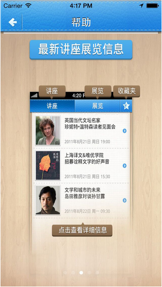 公共信息服务包括:阅览室开放时间,分馆导航,上图新闻,讲座查询预订,展览查询等。SNS服务则可以通过新浪微博,分享图书信息或者感兴趣的讲座和展览。