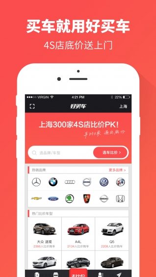 好买车是:4S店上门购车服务第一家!目前好买车整合上海300多家优质4S店,选车、比价、上门服务一站搞定!平台专业购车顾问帮你轻松拿底价。