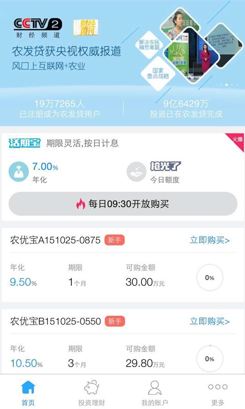 农发贷系国内第一家“结合农业生产场景”的互联网金融平台,获得上市公司诺普信(股票代码002215)投资。农发贷秉承“普惠金融,助力三农”的使命,专注于“农资消费金融”和“农资供应链金融”。农发贷通过介入“农户农资消费场景”、“农资经销商进销存场景”,有效降低信息不对称性,提高风险定价的精准性,同时运用创新的互联网金融工具,将社会理财资金高效地运用于农业生产,解决三农“融资难、融资贵”的问题,满足农业发展中的资金缺口,同时为投资者带来安全高效的回报,分享农业现代化发展红利。