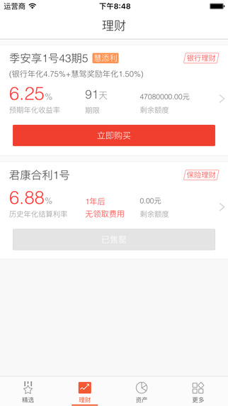 多种类理财产品任您挑选,滑动手指间让您随时随地查看产品详情和收益情况。