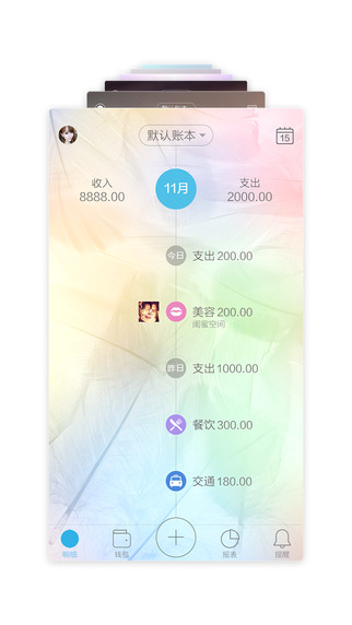 l 辅助日历模式,快速监测超支和各类消费情况;