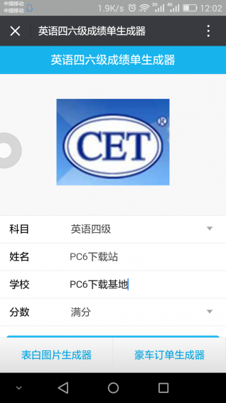 是一款最近微信朋友圈非常火的英语六级成绩单生成软件