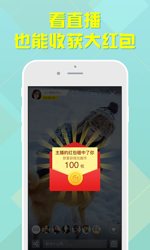 2.红包:快来看直播,红包、红包、红包!会有一大波红包袭来,感受一下被红包砸中的畅爽吧!主播会给大家发大红包哦