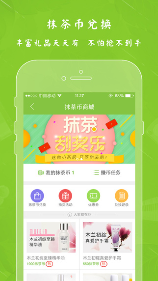 最新妆品,各种正装免费使用,还有抹茶比兑换奖品,各种福利,让你拿到手软。