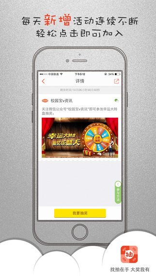 每天一抽,大奖轻松拿!微博,微信平台,大V账号,网络抽奖活动尽在找抽中!红包免费抢,天天摇一摇,游戏礼包,实惠到家,拿起手机,轻松一点,想要什么就有什么!每天都来找抽试试手气吧!