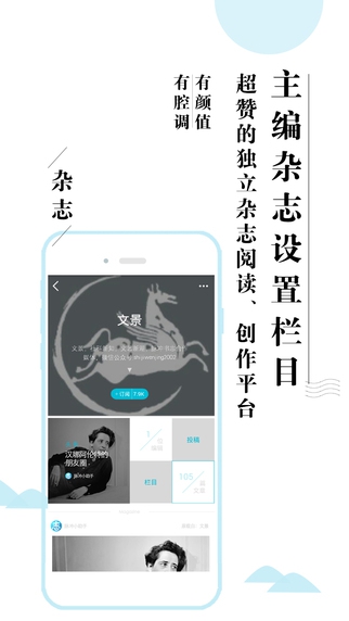 每个人都可以是主编,每个人都值得拥有自己的杂志。 一分钟时间,创建一本你完全主导的杂志,自定义杂志名称、视觉风格、标签……甚至组建你的“杂志社”,邀请小伙伴一起管理投稿、内容。
