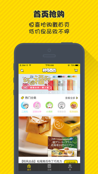 二次元、吃货战队、生活家、潮酷、奇葩杂货……从酷炫的潮鞋到美美的衣服,从逗比整蛊产品到最新的新番动漫周边,从日本的抹茶到欧洲的巧克力,一切小伙伴们喜欢的产品,神奇百货统统有!