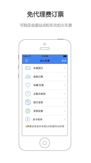 • 软件为火车票直购软件,买票过程没有任何手续费、快递费。