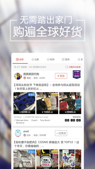 超20000海外代购金牌买手,每天直播全球各卖场/商场/outlets最震撼的折扣免税店促销限时特卖代购血拼实况。