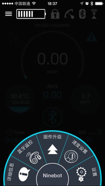 该App是智能电动平衡车“Ninebot”的控制软件,能够通过手机蓝牙与电动平衡车进行无线连接,具有“仪表盘”、“车辆详细信息查询”、“蓝牙遥控”和“参数设置”等功能。