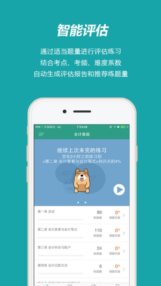 会计从业练题狗ios版是一款基于苹果ios系统,专为会计从业资格证考试复习备考而开发的一款手机app,app主要通过在手机上进行会计从业资格证考试相关科目的练习以及模拟测试来提高考试的考试成绩,和考证过关率。是准备参加会计从业资格考试的朋友们的复习必备app。