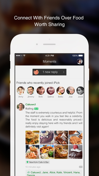 1、食物的时刻:分享、评论和与朋友分享美食体验;