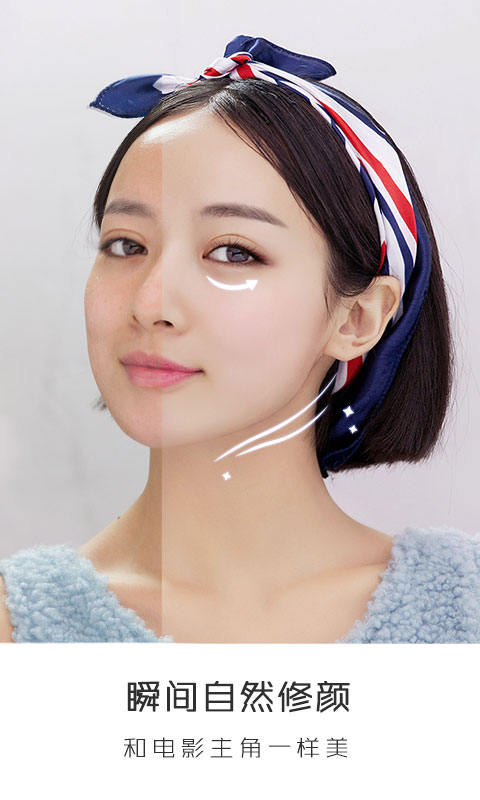 美图秀秀团队潜心研发的自然美颜技术,为你量身打造个性自拍,让你如电影主角般拥有精致五官,效果超真实,超自然!