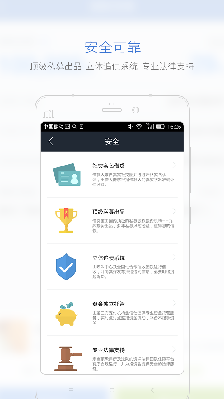 借贷宝iOS版是国内顶级私募机构九鼎控股倾力打造的熟人间借贷平台。借贷宝app以借款人实名、出借人匿名的单向匿名借贷模式,使借款人能够快速获得借款,出借人根据借款人身份主动评估风险,获得更安全的高收益,是你手机上必备的借钱神器。