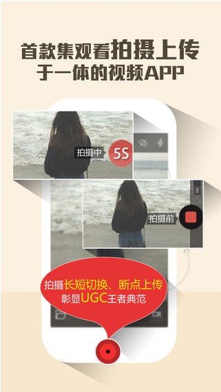 1、【拍摄上传】用镜头聚焦生活点滴,视频DIY,更有拍摄长短切换、断点续传,彰显原创社区王者典范;