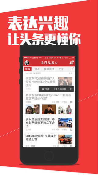 聚合各大门户的全平台资讯,涵盖热点、科技、财经、社会、国际、娱乐、段子、图片、体育、军事、汽车... 随时随地分享内容到微博、微信、朋友圈、QQ空间、Facebook、Twitter等社交平台。