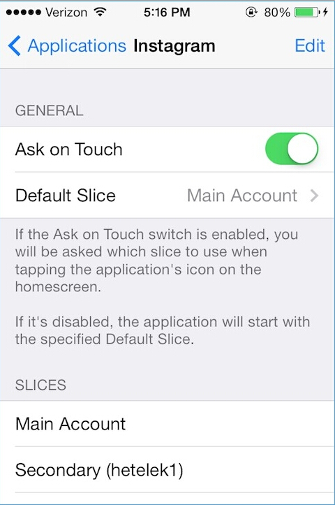 安装Slices插件的好处:以上所有功能需求,都被Slices这个小插件实现了,安装Slices,您只需在他的设置中选择一个app然后设置Slices用户即可。点击已设置app图标,弹窗提示您选择Slices用户,除默认账号外,其余Slices用户下开启该app均以第一次开启形式向您展示信息,您可进行登录不同账号等操作,也就是说您可以快速从app图标切换不同的该app账号,完美解决了共存版复杂且占用桌面位置问题。数据问题Slices也考虑到了,每个Slices用户都有自己独立的数据包,互不干扰。