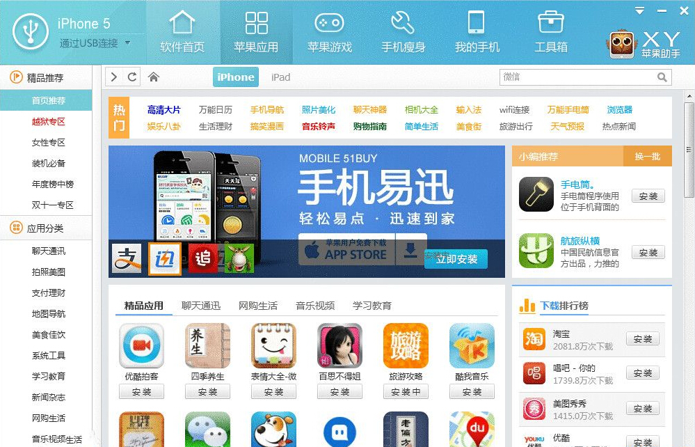 已经在PC端安扎un个“XY苹果助手”PC版(立即下载)的用户,然后连接你的iOS设备,XY苹果助手将会自动为您安装XY苹果助手iPhone版。