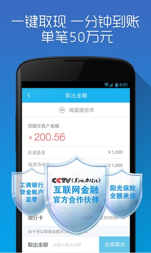 1)多种理财模式可供选择:活期宝最高收益可达银行同期存款收益23倍以上,每日都可便捷取款,提现1分钟到帐, 50万封顶;定期宝是收益更高的固定期限投资产品,是很好的定期储蓄方式理财。