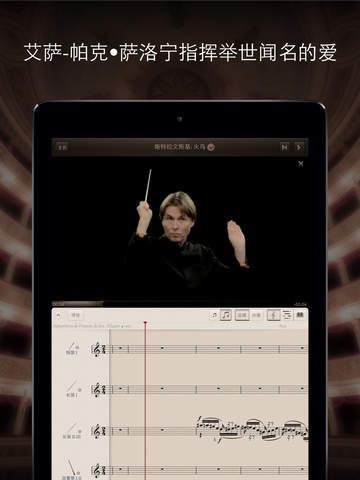 听命于您的乐团:以前所未有的方式体验古典音乐,引人入胜的功能包括:视频,同步乐谱,简谱,以及艾萨-帕克•萨洛宁的讲评。