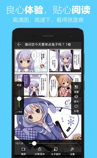 贴心的亮度调节,夜间看漫画不伤眼睛;