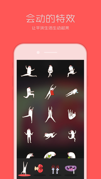 一下iPhone客户端是款专注皂片加动态特效的app,内置n款中二气质贴纸,萌蠢与蛇精病模式无缝切换!堪称自制专属表情包神器,还可以一键分享朋友圈微博等等,并且自带出场效果笑翻你!