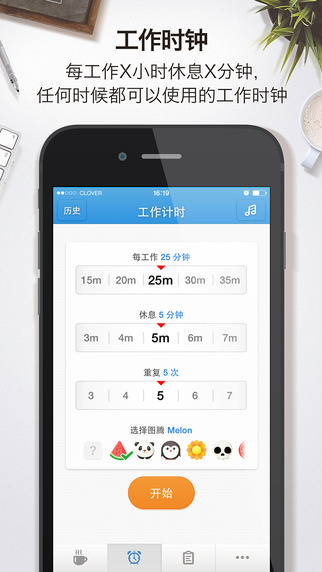 2、工作时钟:每工作X小时休息X分钟,任何适合都可以使用的工作时钟;