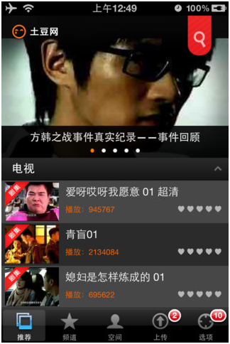 土豆iPhone手机客户端 是以观看、上传、分享为功能主线的视频服务产品。依托土豆网强大的视频资源和技术优势,用户可实现超过4000万条视频的在线播放或下载观看;良好的上传和下载体验,自由的一键分享。带给您全方位的移动视频快感。